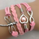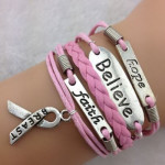 Infinity Bracelet Pink Blue Faith Love Bronze Dragonfly Breast Cancer Support