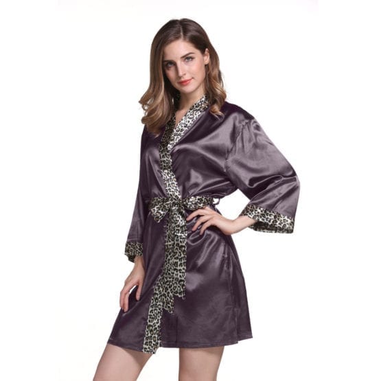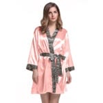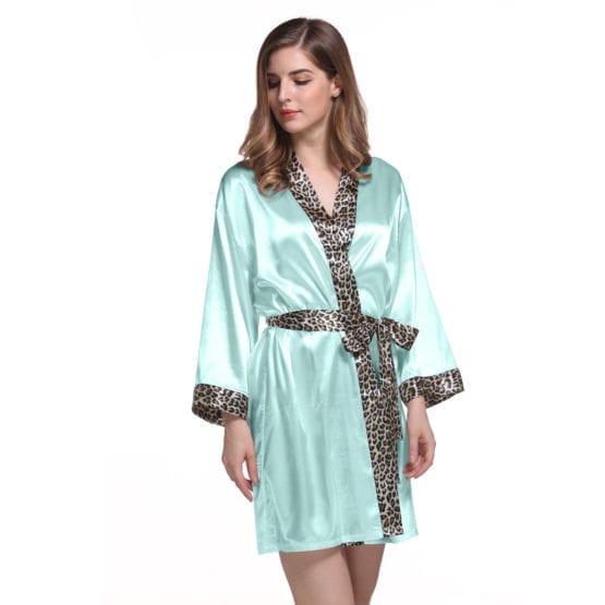 These beautiful Kimono style satin leopard trim bridal party robes are a must for every bride and her bridal party!