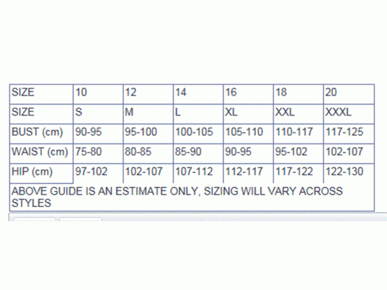 SIZES S/10, M/12, L/14, XL/16 & XXL/18 AVAILABLE