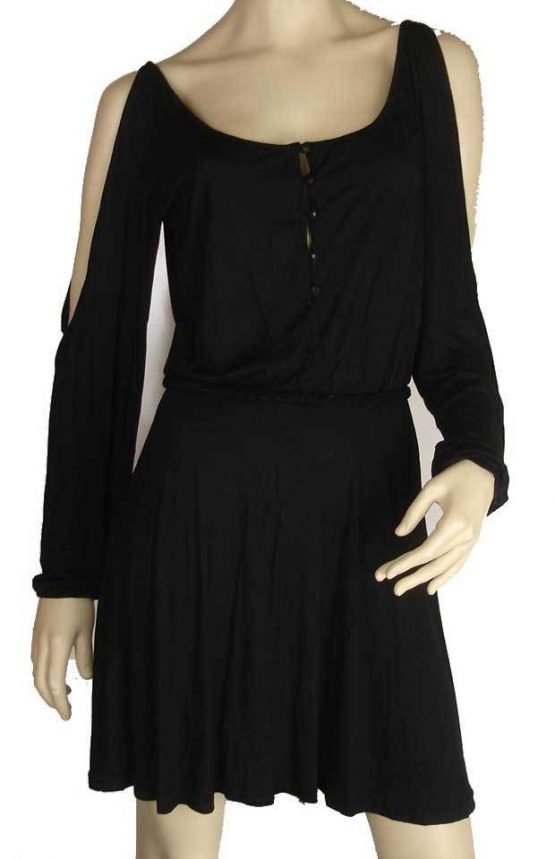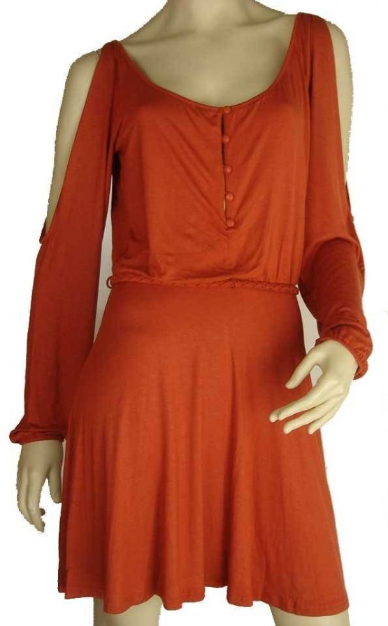 Sz 8 10 12 Women Black Orange Dress Split Sleeve Open Back Smock Shift Office EF