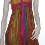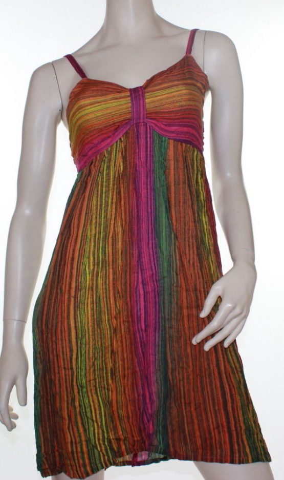 Sz 8 – 10 Women Pink Green Red Crinkle Dress Boho Gypsy Beach Surf Vivid Sun