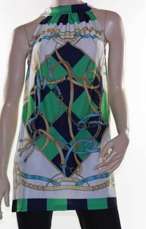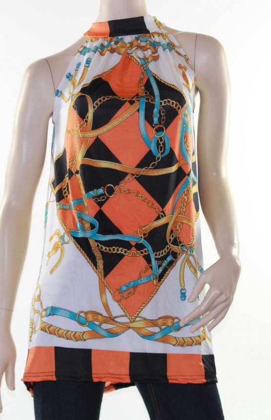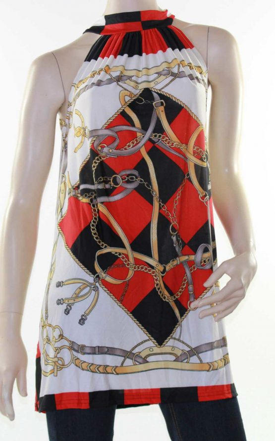 Sz 8 – 16 Womens Green Red Orange Black Halter Tunic Top Dress Harlequin Blouse