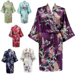 Wholesale Robe Kimono Bulk Lot x 5 Short Peacock Satin Bath Bridesmaid Wedding