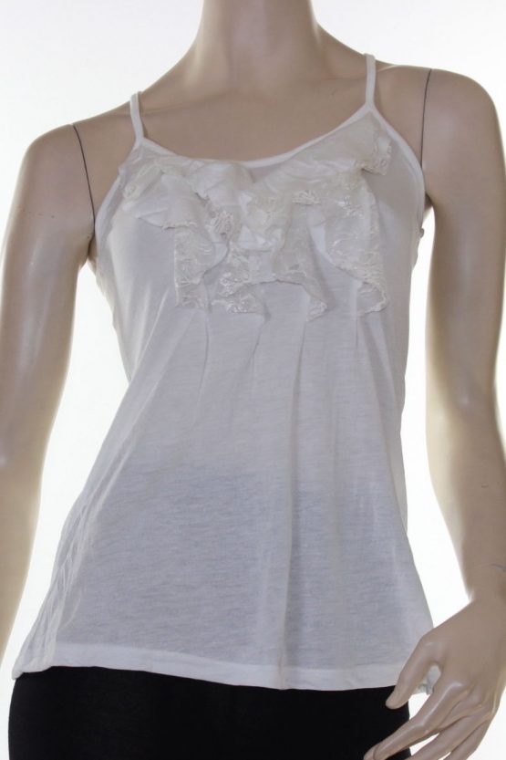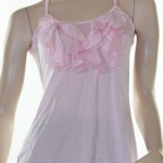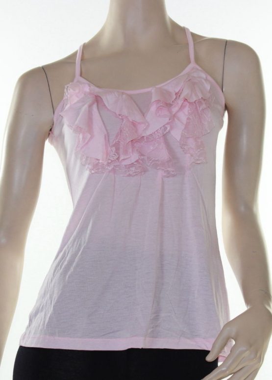 Sz 8 10 12 Women LUSHOUS Pink White Cami Tank Blouse Ruffle Shirt Racer Back