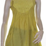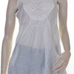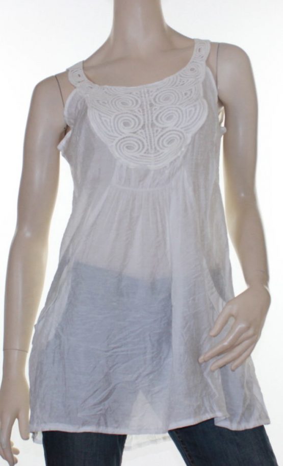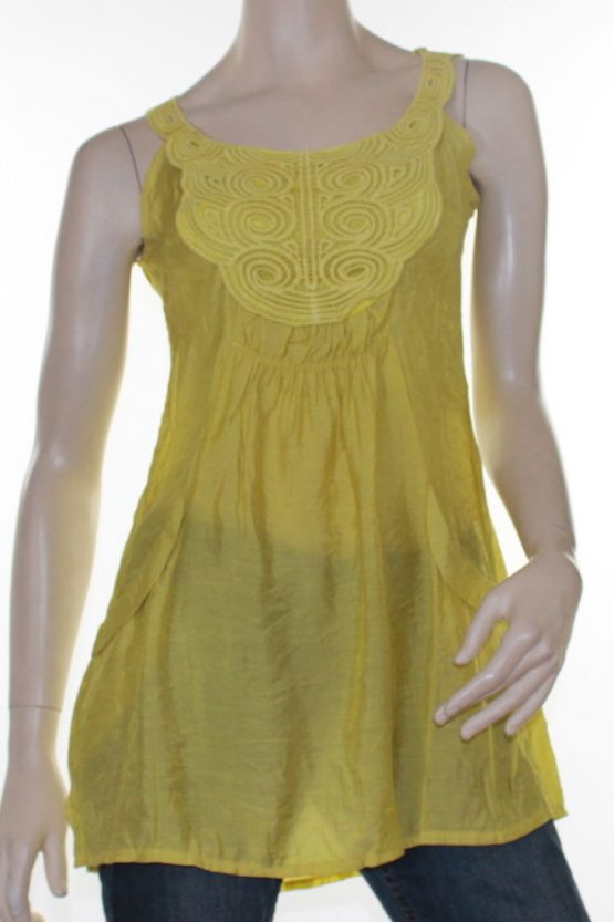 Sz 8 12 Women CKM White Chartreuse Yellow Tunic Top Blouse Ruffle Boho Gypsy